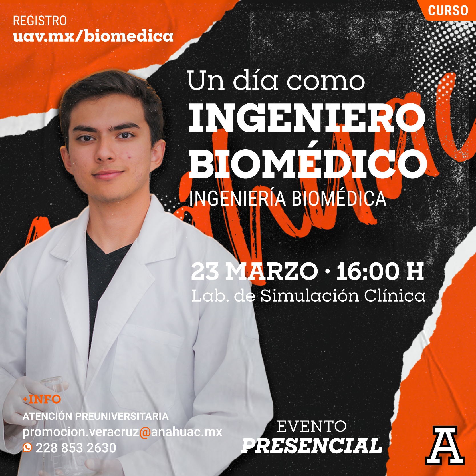 A través de experiencias prácticas en laboratorios especializados, interacción con equipos médicos reales y la orientación de expertos, este taller te dará un vistazo a lo que significa estudiar Ingeniería Biomédica en la Universidad Anáhuac Veracruz.